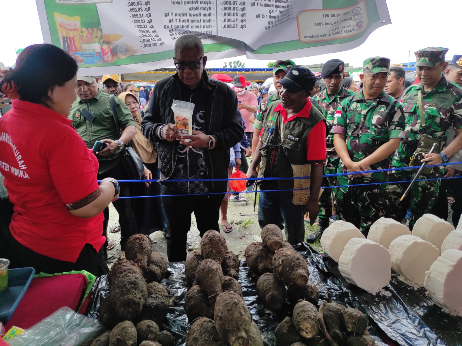TIMIKA – Pemerintah Kabupaten Mimika melalui Dinas Ketahanan Pangan (DKP), Dinas Perindustrian dan Perdagangan (Disperindag) serta Dinas Perikanan gelar operasi pasar murah di Lapangan eks pasar lama, Sabtu (15/06).