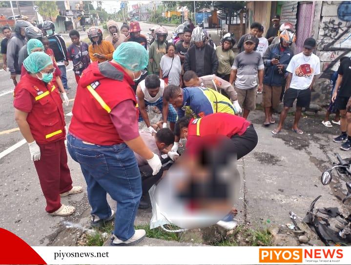 TIMIKA – NY, seorang pengendara sepeda motor Honda Beat Street meninggal dunia akibat mengalami kecelakaan tunggal setelah menabrak pagar tembok. Peristiwa ini terjadi di Jalan Ahmad Yani, tepatnya di samping lorong masuk Gang Singaraja, Minggu (22/03/2026) sekitar pukul 05.54 WIT.